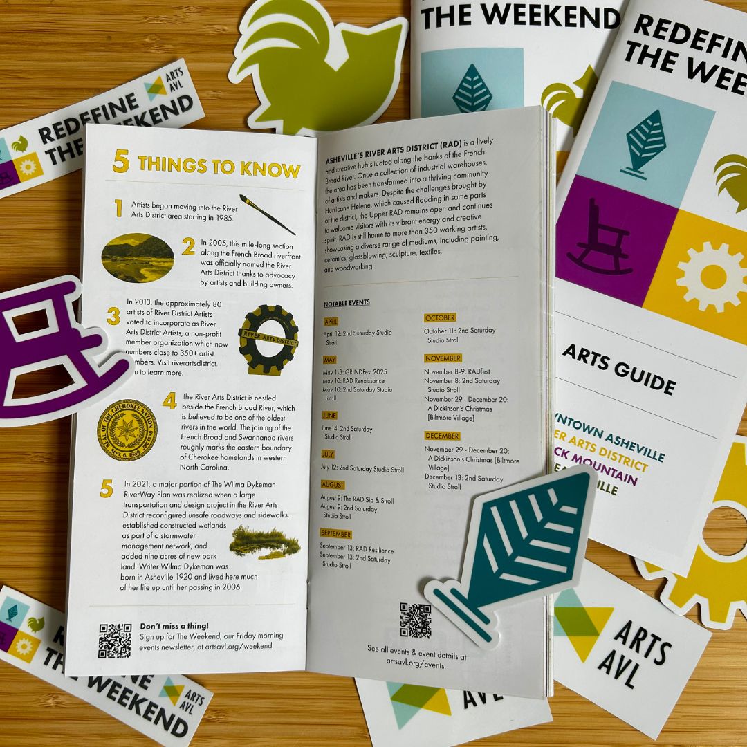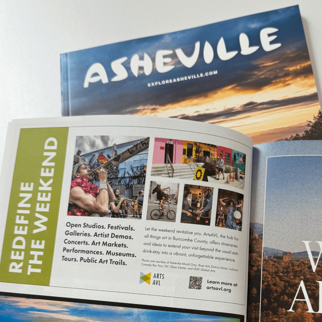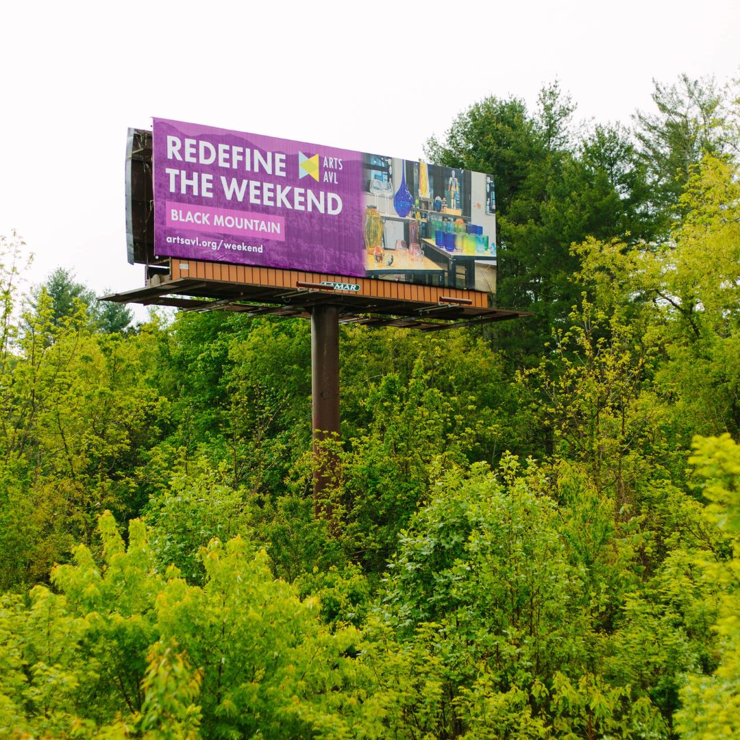 What is Redefine The Weekend? Redefine The Weekend is a year-long marketing campaign created by ArtsAVL to re-engage visitors and locals with Buncombe County’s arts scene. This full 360-campaign includes advertising online and out of home, with billboards, broadcast commercials, social media, email, digital & print ads, signage, a new print Arts Guide, and more…all to increase attention and foot traffic for the arts in our region, with four core areas of focus: Downtown Asheville, River Arts District, Weaverville and Black Mountain.